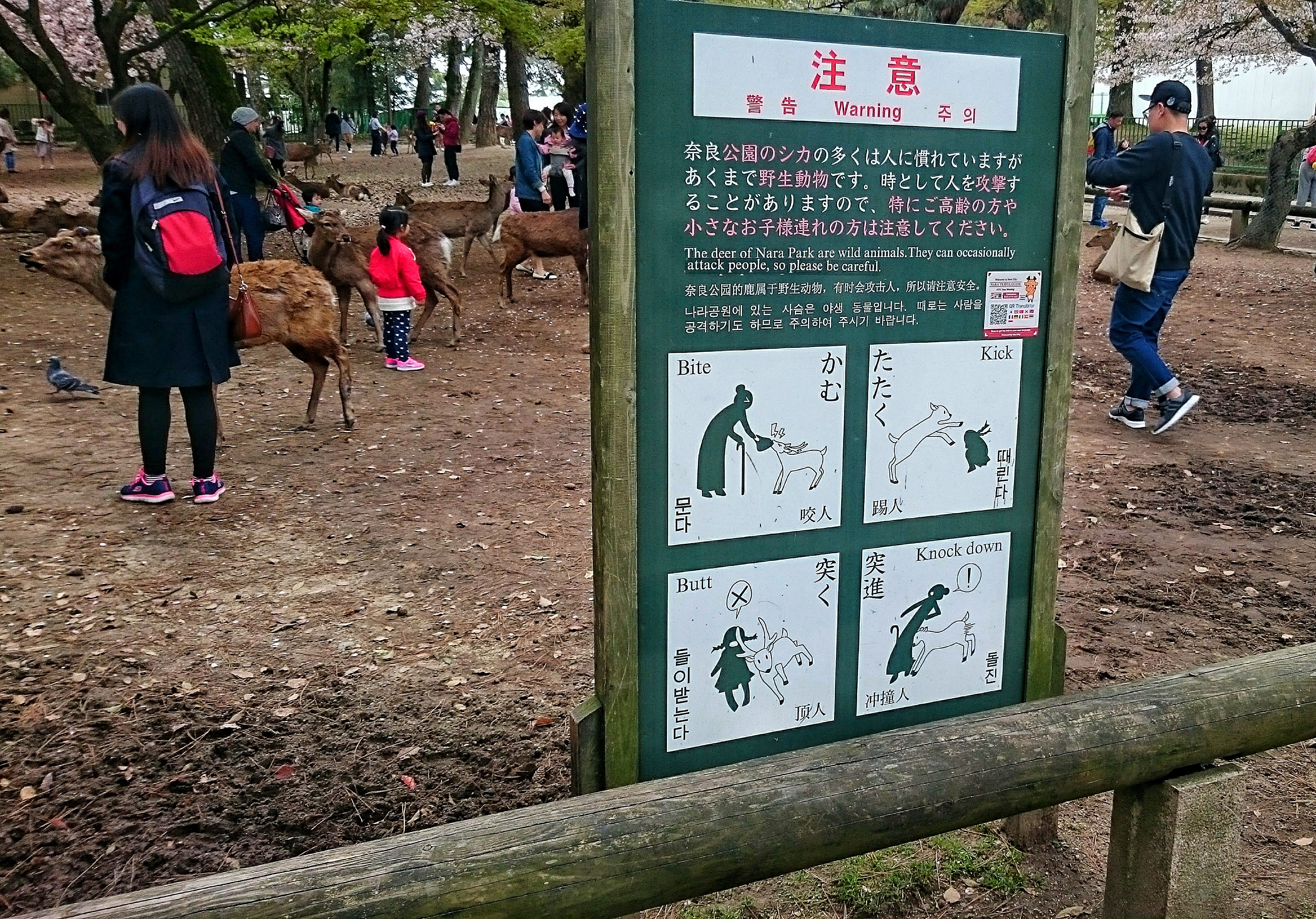 Then there’s the other half. The deer can also be aggressive and determined. Not all of the deer are patient enough for food to stop and bow. Some prefer to nibble at your clothes or nudge you. There are even signs warning you to be careful around them.